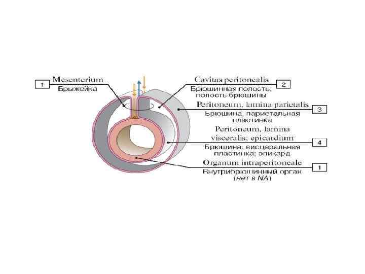 Брюшина, peritoneum — это серозная оболочка, выстилающая стенки брюшной полости и покрывающая некоторые органы, расположенные в ней. Брюшина, выстилающая внутреннюю поверхность брюшной стенки, называется париетальной (пристеночной), а покрывающая органы, расположенные в этой полости, — висцеральной.
