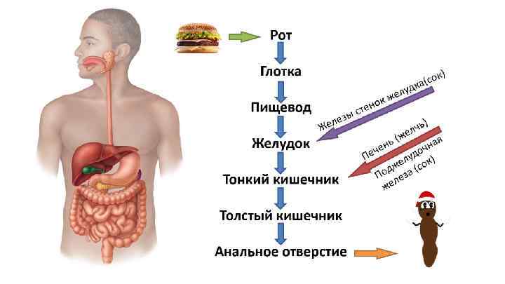 Продвижение пищи Однако возможно обратное движение (рвота) или же проблемы со сфинктерами (изжога). В норме перистальтика проталкивает пищевой комок вниз по пищеварительной системе.