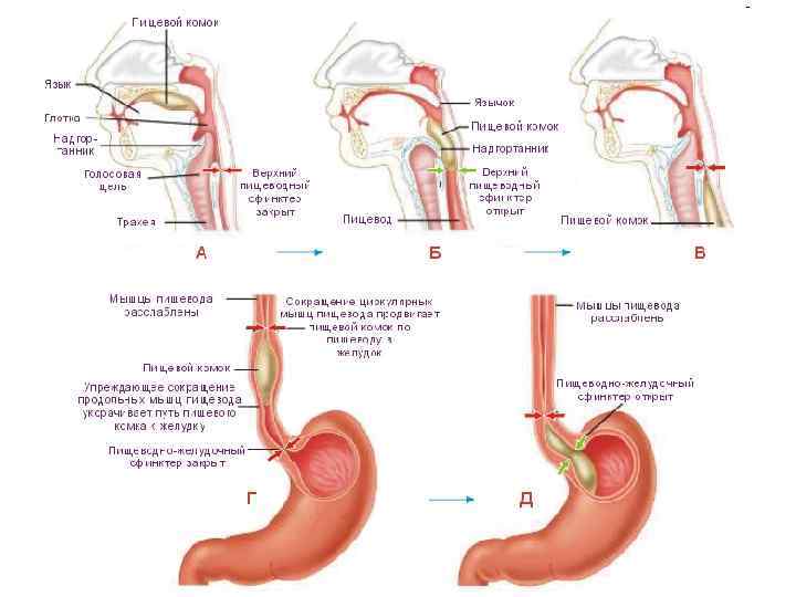 Проглатыванию и скольжению пищевого комка по глотке способствует хорошее измельчение и увлажнение его в ротовой полости, поэтому важно пищу хорошо пережевывать. Глотание - это рефлекторная реакция, которая возникает в ответ на раздражение механорецепторов корня языка пищевыми частицами. От рецепторов корня языка нервные импульсы поступают в продолговатый мозг в центр глотания, откуда по эфферентным нейронам в составе языкоглоточного и блуждающего нервов распространяются нервные импульсы на мышцы глотки и гортани, вызывая акт глотания. В слизистой оболочке глотки имеется шесть крупных скоплений лимфоидной ткани - миндалины, которые являются органами иммунной системы и способствуют обеззараживанию пищи.