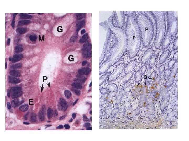 КЛЕТКИ ПОКРОВНОГО ЭПИТЕЛИЯ СЕКРЕТИРУЮ - МУЦИН ЖЕЛЕЗЫ ЖЕЛУДКА КЛЕТКИ СЛИЗИСТАЯ МАЛОДИФФЕРЕНЦИРОВАННЫЕ, ШЕЕЧНАЯ СПОСОБНЫ К МИТОЗУ, СЕКРЕТИРУЮ - МУЦИН Устье 1 1 Выводной проток 2 2 3 Тело ОБКЛАДОЧНАЯ КЛЕТКА ОБРАЗУЮТ ХЛОРИДЫ; СИНТЕЗИРУЮТ ФАКТОР КАСТЛЯ 3 Дно 4 СЕКОРЕТИ РУЮТ – ПЕПСИНОГЕН ГЛАВНАЯ (расщепляют КЛЕТКА белки на олигопептиды) ОТКРЫТОГО И ЗАКРЫТОГО ТИПА. НЕСУТ ЭНДОКРИННОЦИТ РЕЦЕПТОРНУЮ И РЕГУЛЯТОРНУЮ ФУНКЦИЮ 4