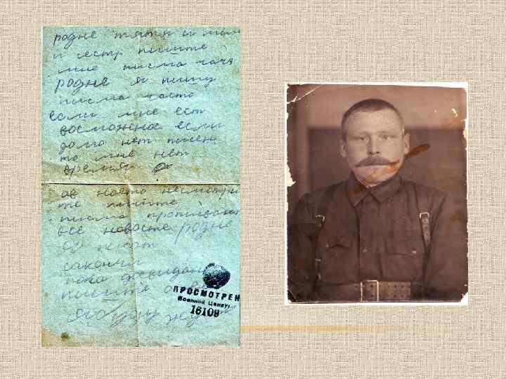 «…РОДНЫЕ, ЖИВИТЕ ПОМАЛЕНЬКУ, ТЯТЯ И МАМА НЕ БЕСПОКОЙТЕСЬ ОБ НАС, МЫ ПРИДЁМ ДОМОЙ СКОРО. Я ЗНАЮ, ВЫ БОЛЬНО ПЛАЧЕТЕ, НЕ ПЛАЧЬТЕ, САМИ СЕБЕ ХУЖЕ ДЕЛАЕТЕ, ЖИВИТЕ СПОКОЙНО, БУДЕТ ЛЕГЧЕ ВАМ…» , «…НАМ ДАЛИ НОВЫЕ ВАЛЕНКИ, ВАТНЫЕ БРЮКИ И ШАПКИ, НО СУЛЯТ ЕЩЁ ДАТЬ ПОЛУШУБКИ. ОДНИМ СЛОВОМ, ОДЕЛИ НАС ХОРОШО…» , «… Я ПИШУ ВАМ ПИСЬМО И ХОЧУ СООБЩИТЬ, НАС ОДЕЛИ ХОРОШО, ДАЛИ НОВЫЕ САПОГИ И ВАТНЫЕ БРЮКИ, И НОВЫЕ СУКОННЫЕ ШАПКИ, И ВАРЕЖКИ, ДАЛИ ШУБНЫЕ ЖИЛЕТКИ И У МЕНЯ ЕЩЁ ФУФАЙКА, НО Я ЕЩЁ КУПИЛ ШУБЁНКУ ЗА 60 РУБЛЕЙ. У МЕНЯ ЕЩЁ ЕСТЬ ДОМАШНИЕ ВАРЕЖКИ И НОВЫЕ ДОМАШНИЕ НОСКИ. ТАК ЧТО Я НЕ БОС, ОДЕЖДА ХОРОШАЯ…» , «…РОДНЫЕ, ВЫ ПИСАЛИ, ЧТО МАМА БОЛЕЕТ, СЁСТРЫ ПОМОГАЙТЕ ЕЙ, СТРЯПАЙТЕ И ТАСКАЙТЕ ВОДУ И ДРОВА, СЛУШАЙТЕСЬ ТЯТИ И МАМЫ. СЁСТРЫ, БЕЗ НИХ ВАМ БУДЕТ ПЛОХО, ТАК ВСЁ ДЕЛАЙТЕ САМИ, ПУСКАЙ МАТЬ ВАМ ТОЛЬКО ХЛЕБ ИСПЕЧЕТ. СЁСТРЫ, СЛУШАЙТЕСЬ РОДНЫЕ, ЛЮБИТЕ РОДНЫЕ, ДОЖДИТЕСЬ НАС, НЕ БОЛЕЙТЕ. ДАЙ БОГ ВАМ ДОБРОГО ЗДОРОВЬЯ» , «…ЧЕГО ТЫ, ТЯТЯ, НАДУМАЛ БОЛЕТЬ, ОЗДОРАВЛИВАЙ, НЕ ПОДДАВАЙСЯ БОЛЕЗНЯМ. Я ПРИДУ ДОМОЙ И МЫ С ТОБОЙ ПОГОВОРИМ, БРОСЬ БОЛЕТЬ И ДОЖДИСЬ НАС. МАМА НЕ РАССТРАИВАЙСЯ, А ТО НЕ ЛАДНО БУДЕТ. ЕСЛИ НАЙДЕТ НА ТЕБЯ ГОРЕ. СХОДИ В ДЕРЕВНЮ И ЛЕГЧЕ БУДЕТ. КОНЕЧНО ЖАЛКО ТЕБЕ И НАС И ТЯТЮ, НО НИЧЕГО НЕ СДЕЛАЕШЬ - ВОЙНА. ВОТ РАЗОБЬЕМ ВРАГА И ВЕРНЕМСЯ ДОМОЙ. ПРОПИШИТЕ, ГДЕ ЛЕЖИТ ТЯТЯ. . » .