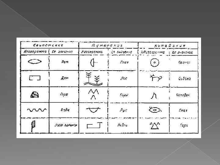 Введение Письмо – знаковая система фиксации речи, позволяющая с помощью начертательных (графических) элементов закреплять речь во времени и передавать ее на расстояние. "Логографическое Письмо" – использование рисунков для представления объектов. Затем рисунки свелись к более формальным символам – иероглифам. "Фонетическое Письмо" – изображение звуков символами.
