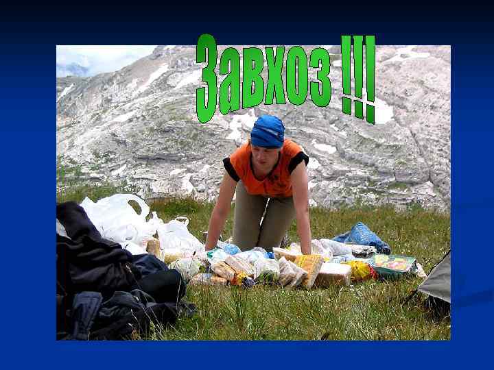 Учитываем! Первые дни - пониженный аппетит, на 4 -ый день похода открывается ЯМА n В сложные штурмовые дни - максимум «быстрых» углеводов, жирная тяжелая пища желательна на следующий день. n Витамины! Лук, чеснок, лимон n Минеральные соли n