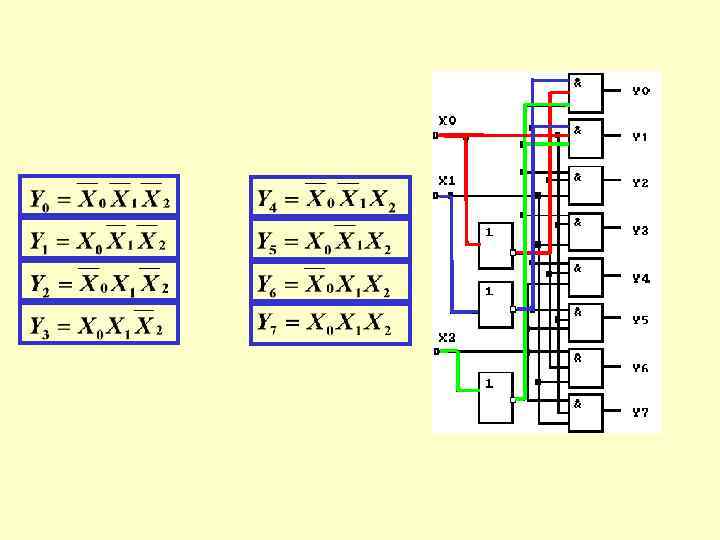 2. Дешифратори. Призначення, схема, принцип роботи та умовне позначення Дешифратором (декодером) називають пристрій, призначений для розпізнавання різних кодових комбінацій (слів). Кожному слову на вході дешифратора відповідає "1" на одному з його виходів. На підставі складемо структурні формули для кожного виходу: