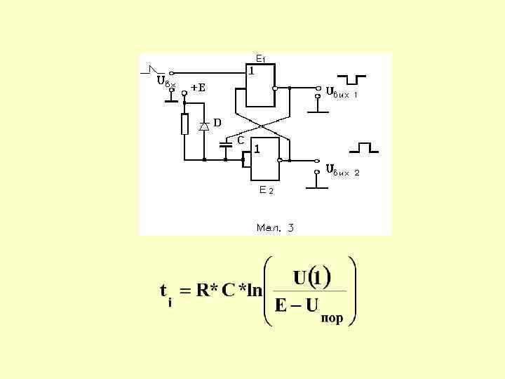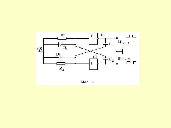 2. Мультивібратори Mультивібратор, на основі інвертуючого тригера Шмідта, в якому негативний зворотний зв'язок здійснюється через фільтр частот у вигляді RC - кола .