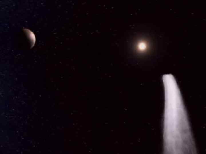 • Пилососи Сонячної системи üУ липні 1992 року до Юпітера наблизилася комета. Вона пройшла на відстані близько 15 тисяч кілометрів від верхнього кордону хмар, і потужна гравітаційна дія планети-гіганта розірвала її ядро на 17 великих частин. üУ 1994 році, при наступному зближенні з Юпітером, усі уламки комети врізалися в атмосферу планети з величезною υ≈ 64 км/с. ü Цей грандіозний космічний катаклізм спостерігався як на Землі, так і в космосі за допомогою космічних засобів. üПадіння Слід від одного з уламків комети ядер супроводжувалося цікавими атмосферними ефектами, наприклад, полярними сяяннями, чорними плямами в місцях падіння ядер комети, кліматичними змінами.