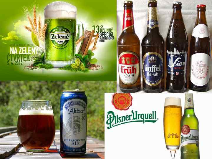 Отдельные классы и виды Грюйт Пильзнер Лагер Сахти Экспорт Портер Стаут Дункель (нем. Dunkelbier) Альтбир Кёльш Бок-бир