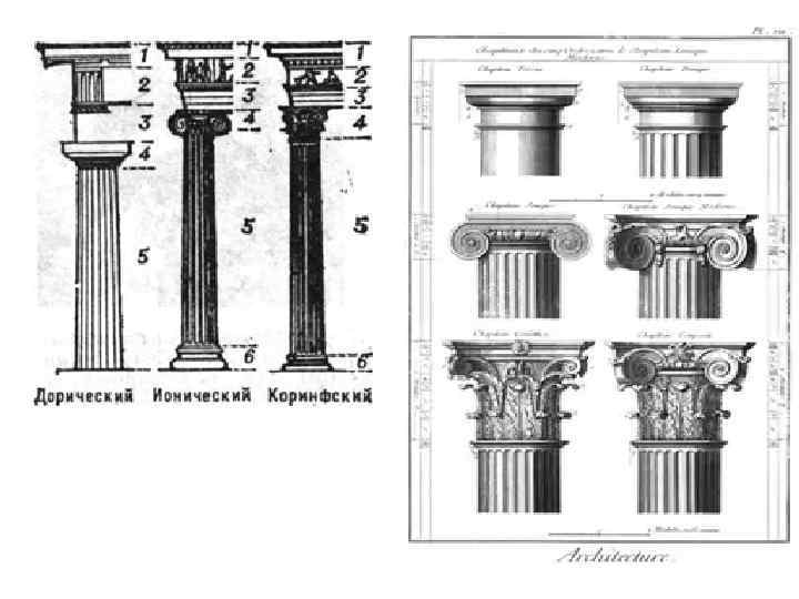 Архитектурные ордеры • Колонна получает у римлян преимущественно декоративное значение. • Римляне взяли готовые греческие стили и видоизменили их по своему вкусу. Таким образом, образовалось пять ордеров: • римско дорический, • римско ионический, • римско коринфский, • Композитный сочетание элементов ионического и коринфского ордеров, • Тосканский упрощенный вариант дорического ордера, от которого отличается гладким фризом и колонной без каннелюр.