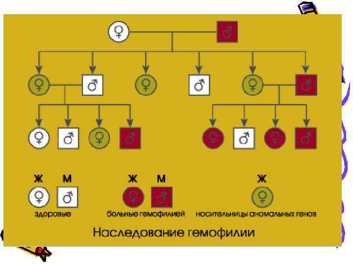 Сцепленное с полом наследование Схема наследования гемофилии А.