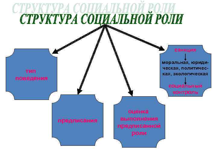 санкция моральная, юридическая, политическая, экологическая тип поведения социальный контроль предписания оценка выполнения предписанной роли