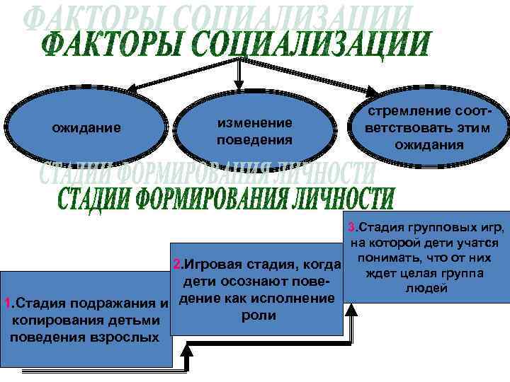 ожидание изменение поведения стремление соответствовать этим ожидания 3. Стадия групповых игр, на которой дети учатся понимать, что от них 2. Игровая стадия, когда ждет целая группа дети осознают повелюдей 1. Стадия подражания и дение как исполнение роли копирования детьми поведения взрослых