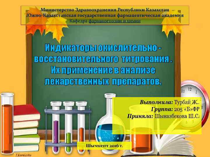 ПЛАН I. Введение II. а) Редокс индекаторы б) Специфические индикаторы в)Применяемые индекаторы в анализе лекарственных препаратов III. Заключение IV. Список литературы