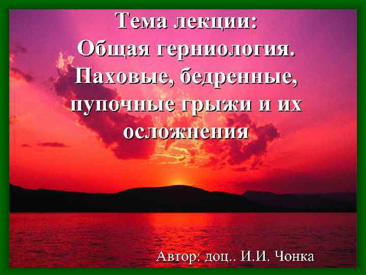 План лекции 1. Анатомо-физиологические особенности. 2. Паховые грыжи (клиника, диагностика, дифдиагностика, тактика, лечение). 3. Бедренные грыжи (клиника, диагностика, дифдиагностика, тактика, лечение). 4. Пупочные грыжи (клиника, диагностика, дифдиагностика, тактика, лечение). 5. Грыжи белой линии живота (клиника, диагностика, дифдиагностика, тактика, лечение). 6. Диафрагмальные грыжи (клиника, диагностика, дифдиагностика, тактика, лечение). 7. Осложнения грыж: (ущемление, воспаление, копростаз, повреждение, опухоль)
