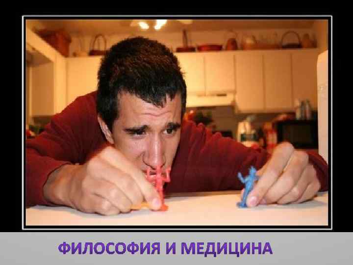 ОБЩЕЕ ФИЛОСОФИЯ И МЕДИЦИНА • Общий предмет исследования ЧЕЛОВЕК ОСОБЕННОЕ • Медицина – с «практической» стороны (физическое и душевное здоровье); философия – больше с теоретической – человек как сложное био-психосоциальное существо, существующее в природе и социуме • Медицина – «как выжить? » • Философия – «как жить? » • Общие истоки (развивались «рука об руку с античности ) • Общая история развития (врачифилософы: Эмпедокл, Гиппократ, Авиценна/ибн Сина, Парацельс, Фрейд, Юнг и др. Новое время (17 в. ) – разделение науки и философии, фактически медицина становится самостоятельной отраслью знания • Общие методы исследования: • Метафизический/Диалектический • Системный • исторический • Проблема современной медицины: естественнонаучных знаний для решения всех проблем медицины недостаточно сближение