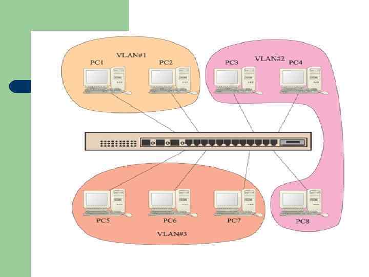 При использовании технологии виртуальных сетей в коммутаторах решаются две задачи: l l повышение производительности в каждой из виртуальных сетей, так коммутатор передает кадры в такой сети только узлу назначения; изоляция сетей друг от друга для управления правами доступа пользователей и создания защитных барьеров на пути широковещательных штормов.