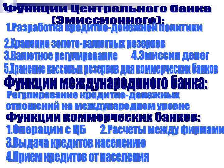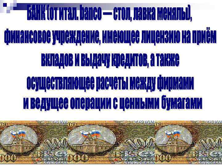 План n n n n Понятие банка История возникновения Понятие банковской системы Двухуровневая банковская система Правовое положение Центрального банка Основные функции и задачи ЦБ РФ Инструменты и методы проведение кредитно-денежной политики