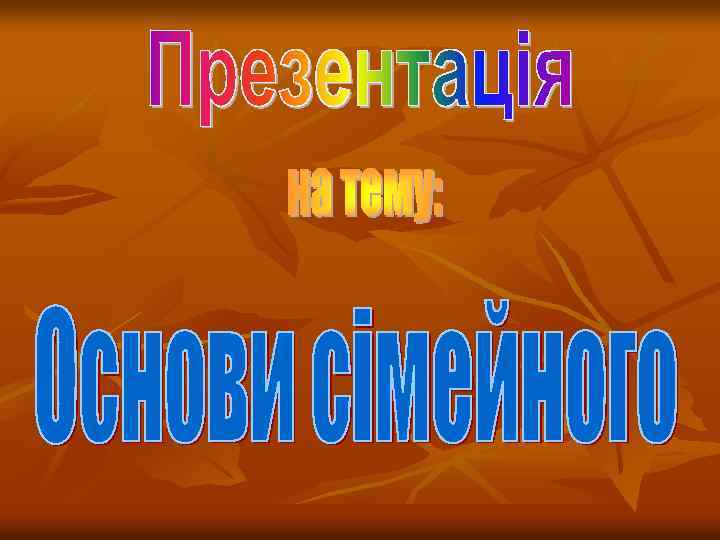 Регулювання сімейних відносин здійснюється: n n зміцнення сім’ї як соціального інституту; утвердження почуття обов’язку перед батьками; побудова сімейних відносин на почуттях взаємної любові та поваги; забезпечення кожної дитини сімейного виховання;