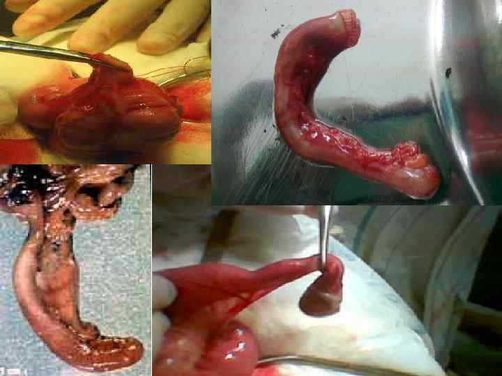 Апостематозный — как и флегмонозный, но в стенке образуются мелкие абсцессы представленные некротизированной тканью и нейтрофильными лейкоцитами. Гангренозный — некроз стенки отростка, диффузная нейтрофильная инфильтрация, перитонит. Перфоративный — края разрыва представленны некротизированной тканью с наложениями фибрина, лейкоцитов и эритроцитов.