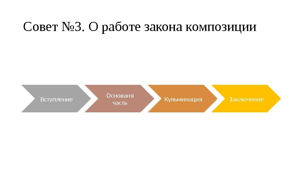 Совет № 3. О работе закона композиции Вступление Основаня часть Кульминация Заключение