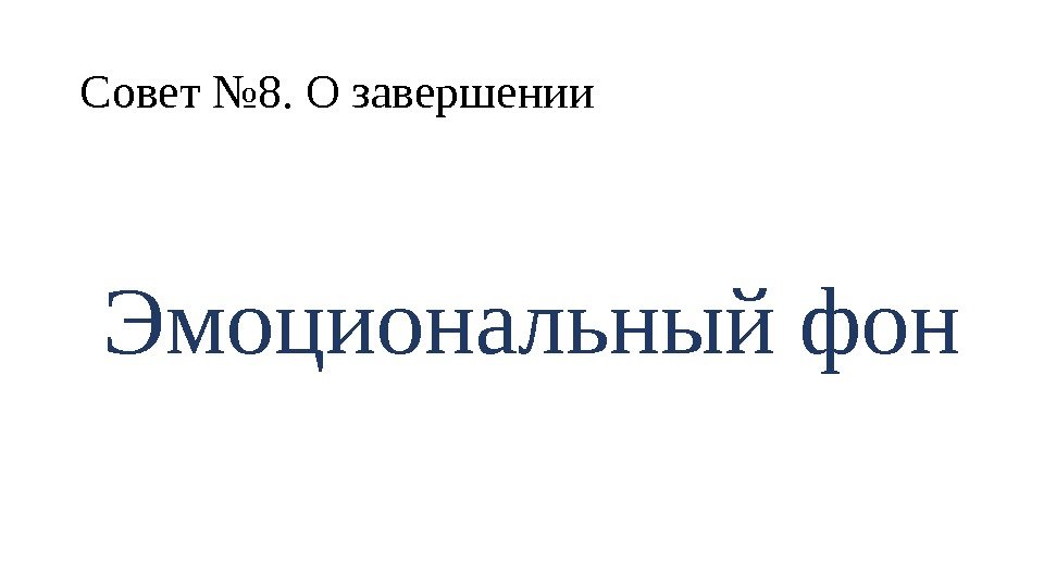 Совет № 8. О завершении Эмоциональный фон