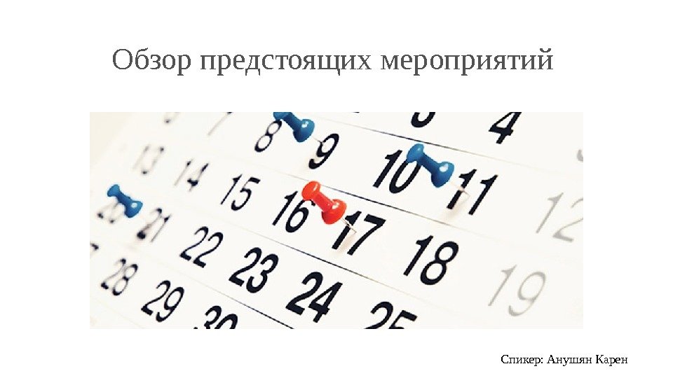 Обзор предстоящих мероприятий Спикер: Анушян Карен