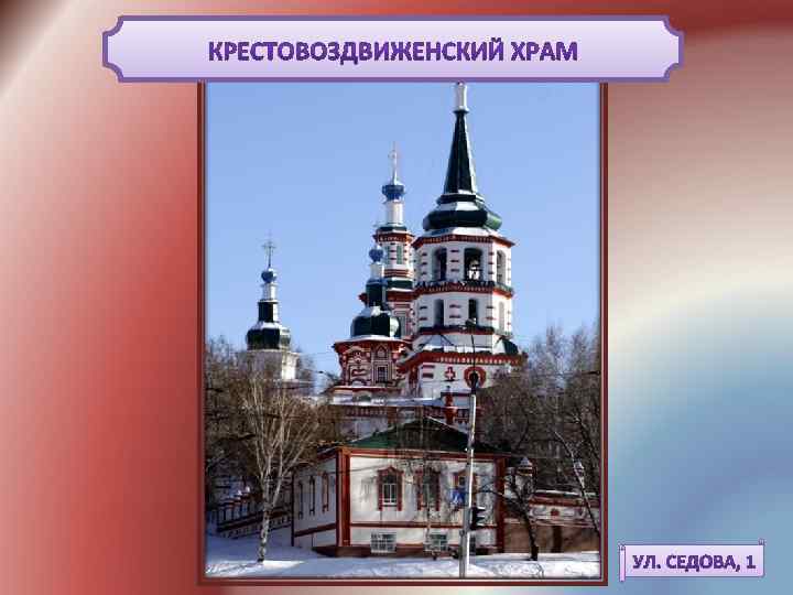 ПЛАН УРОКА 1. ЦЕРКОВЬ НЕРУКОТВОРНОГО ОБРАЗА СПАСА (СПАССКАЯ ЦЕРКОВЬ) 2. СОБОРНЫЙ ХРАМ ВО ИМЯ БОГОЯВЛЕНИЯ ГОСПОДНЯ (БОГОЯВЛЕНСКИЙ СОБОР) 3. КРЕСТОВОЗДВИЖЕНСКИЙ ХРАМ (ЦЕРКОВЬ)