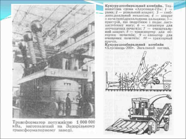Розвиток економіки України в 1953 -1964 рр. Галузь промисловості Досягнення Металургія і паливно 1965 р. – порівняно з 1959 р. збільшилося виробництво -енергетичний чавуну, сталі і прокату на 70%; видобуток нафти комплекс збільшився – в 4, 6 раза; газу – в 4 раза; 1962 р. – стала до ладу перша черга нафтопроводу «Дружба» ; будівництво Каховської, Кременчуцької, Дніпропетровської та Київської гідроелектростанцій Машинобудування Дніпропетровськ – завод важких пресів та комбайнів; Запоріжжя – трансформаторний завод; Херсон – завод сільськогосподарських машин; Запоріжжя – легке автомобілебудування; Миколаїв – випуск суховантажних кораблів; 1960 – Київ, Запоріжжя – реактивні лайнери ТУ 134; 1959 -1965 рр. – виробництво нових засобів автоматизації зросло в 4, 2 рази Легка промисловість 1959 -1965 рр. – споруджено і реконструйовано 700 підприємств; випуск товарів культурно-побутового вжитку зріс удвічі