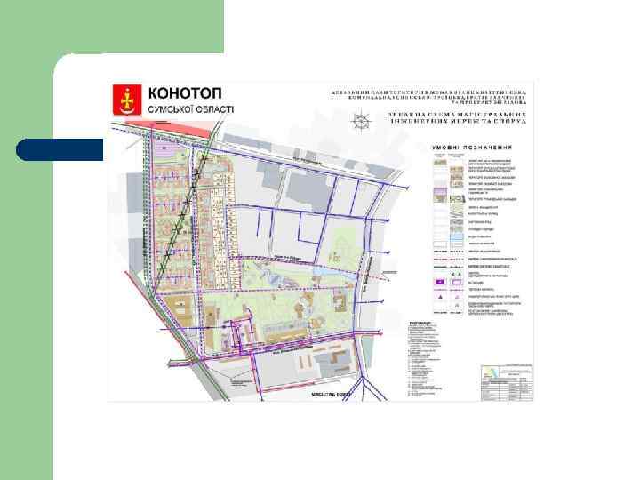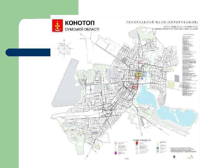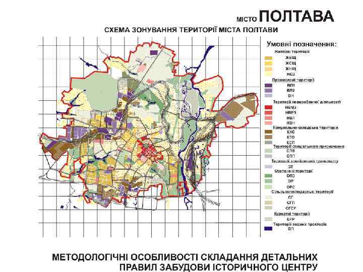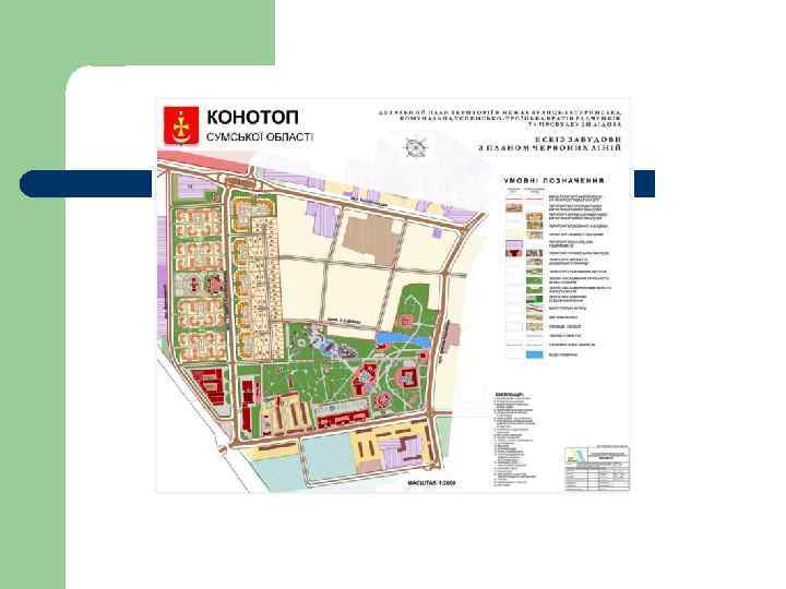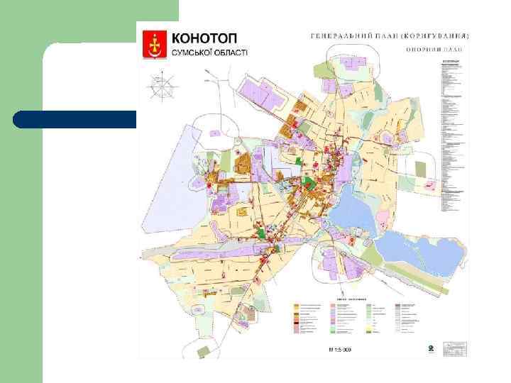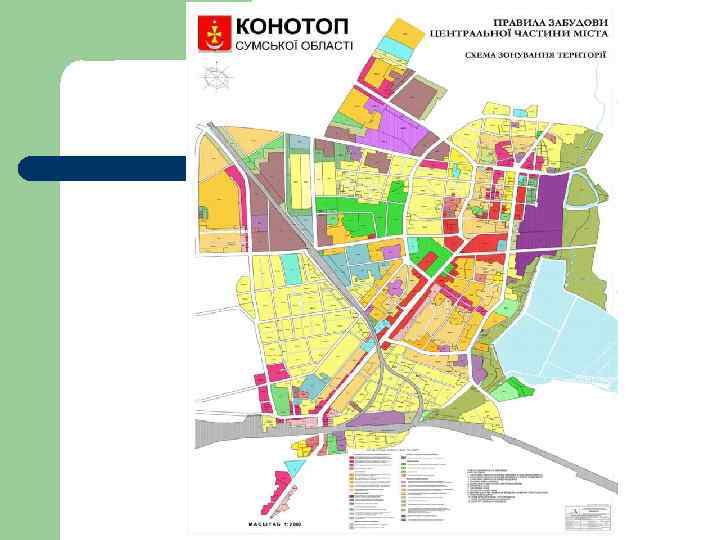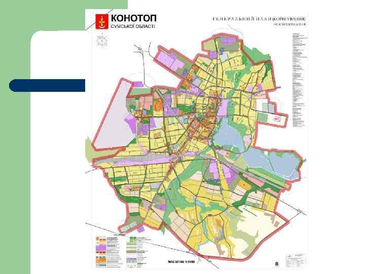 Схема зонирования состоит из основных типов зон: l l l Общественные (громадські) Г Жилые Ж Рекреационные Р Курортные К Зоны транспортной инфраструктуры ТР Зоны инженерной инфраструктуры (інженерної інфраструктури) ІН Коммунально – складские КС Производственные (виробничі) В Специальные С Зоны земель историко-культурного назначения (історико – культурного призначення) ІК Зоны земель природно– заповедного фонда ПЗФ
