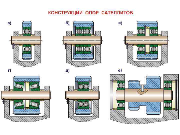 ДИФФЕРЕНЦИАЛЬНЫЕ ПЕРЕДАЧИ (в которых все основные звенья подвижны) а б в г а – с двумя степенями свободы; б – замыкающая, в которой соединяются центральные колеса; в, г – замыкающие, где одно из центральных колес соединяется с водилом; д – дифференциал заднего моста автомобиля, выполненный по схеме «б» но с коническим колесом д