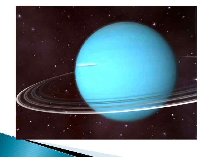 Уран - седьмая планета от Солнца. Это относительно большая планета для Солнечной системы с диаметром 51 118 км и массы 8. 67 E+25 кг. Уран имеет период вращения 0. 72 дней. Среднее расстояние от Солнца 2, 870, 990, 000 км. Атмосфера Урана составлена из 82%-ого водорода, 14%-ого гелия и к других элементов.