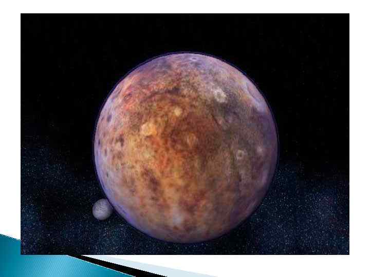 Плутон Плутон - девятая планета от Солнца. Это относительно маленькая планета для Солнечной системы с диаметром 2 320 км и массы 1. 29 E+22 кг. Плутон имеет период вращения 6. 39 дней. Среднее расстояние от Солнца 5 913 520 000 км. Атмосфера Плутона составлена из метана и других элементов.