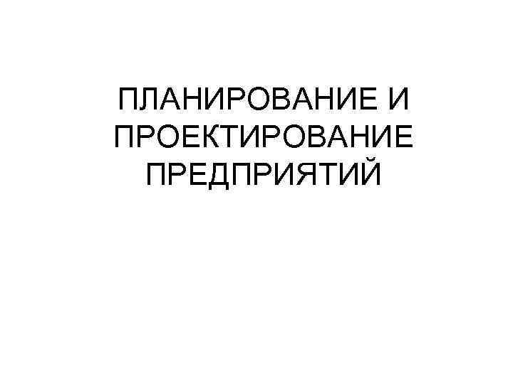 ПЛАНИРОВАНИЕ И ПРОЕКТИРОВАНИЕ ПРЕДПРИЯТИЙ.ppt