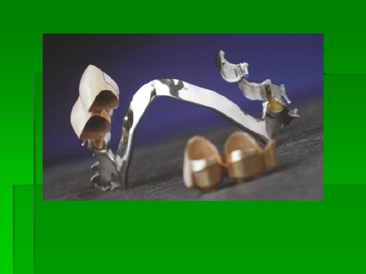 § Базисом съемного пластинчатого протеза является пластинка из пластмассы или металла, на которой фиксируются искусственные зубы и приспособления для содержания протеза в полости рта
