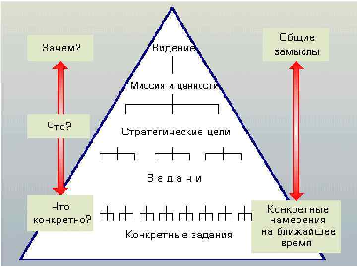 ВИДЕНИЕ МИССИЯ 10 -25 лет Стратегия Тактика Деятельность 3 -5 лет 1 -3 года ВИДЕНИЕ МИССИЯ 10 -25 лет Стратегия Тактика Деятельность 3 -5 лет 1 -3 года 1 год и меньше