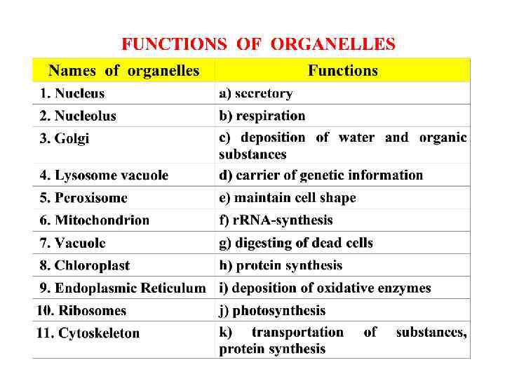 STEP 3 Choose the functions for plasmalemma and cell wall a) selective permeability/проникність for substances b) storage depot for carbohydrates c) permits the organism to build and hold its shape d) gives cells rigidity and strength e) gives protection against mechanical stress f) regulates the movement of materials into and out of cells g) limits the entry of large toxic molecules h) helps to retain water i) permits the creation of a stable osmotic environment j) facilitates the transport of needed materials k) provides mechanical support and protection l) maintains the cell potential