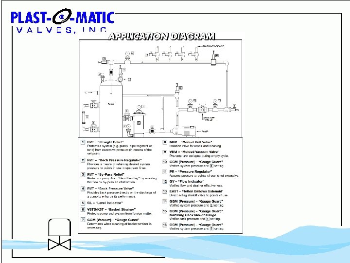 Plast-O-Matic Valves, Inc. • Créée en 1967 au New Jersey, États-Unis • Petite entreprise dirigée par une femme • 45 ans d'excellence en 2012 PDG : Judith De. Lorenzo Certifiée TACOM par l'Armée américaine Récompense pour ses vannes utilisées sous l'eau Unité de purification.