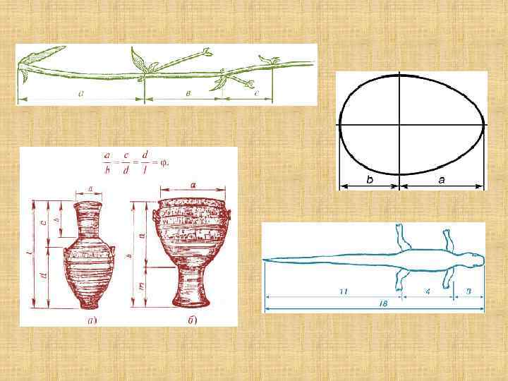 • Золотое сечение - это такое пропорциональное деление отрезка на неравные части, при котором весь отрезок так относится к большей части, как сама большая часть относится к меньшей. Или, другими словами, меньший отрезок так относится к большему, как больший ко всему: • a : b = b : c или с : b = b : а. • Отрезки золотой пропорции выражаются бесконечной иррациональной дробью 0, 618. . . , если c принять за единицу, a = 0, 382.