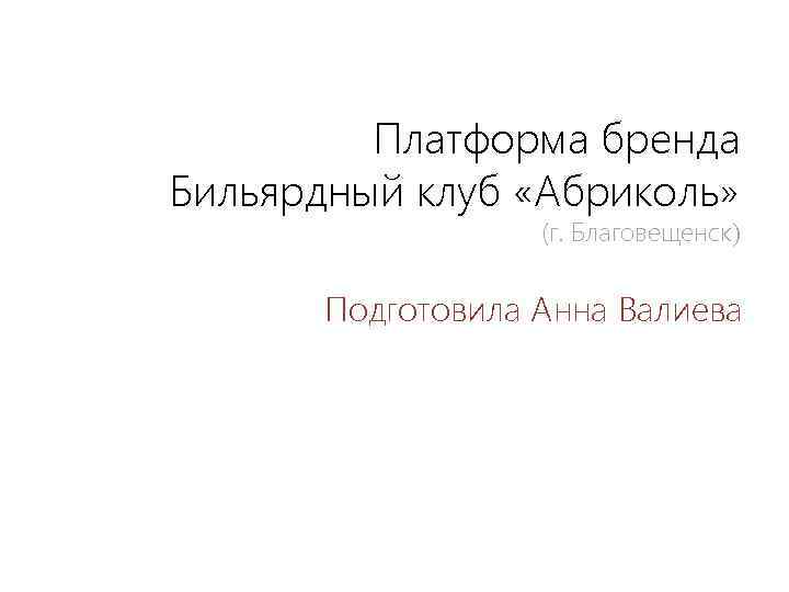 Платформа бренда Бильярдный клуб «Абриколь» (г. Благовещенск) Подготовила Анна Валиева