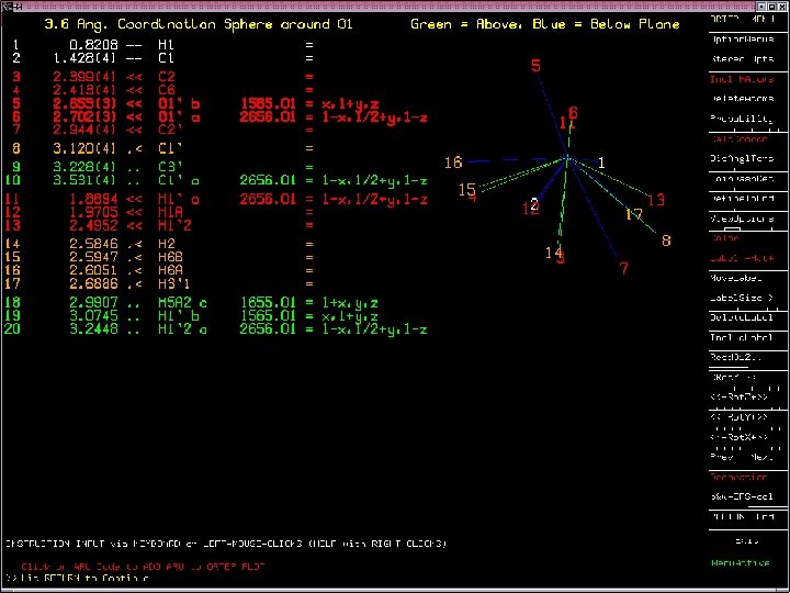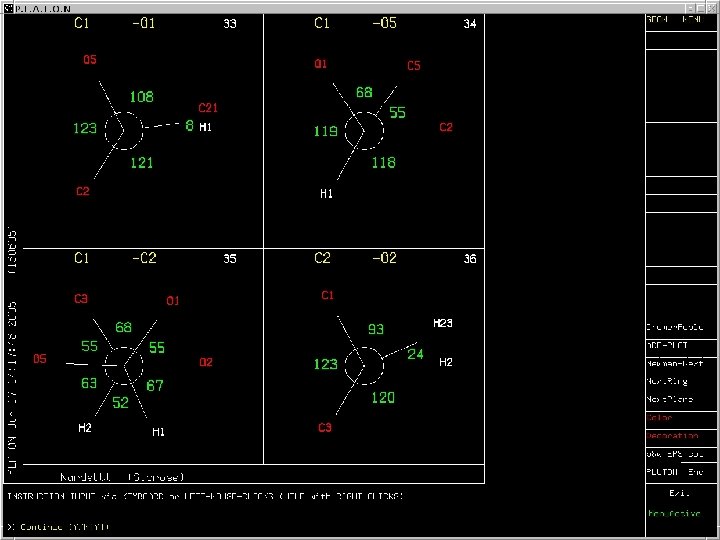 Intra-Molecular (Continued) • Determination of the hybridization, R/S assignments and ‘topology numbers’. • Listing of the plane-plane and bond-plane angles. • Ring puckering analysis (Cremer & Pople) Example