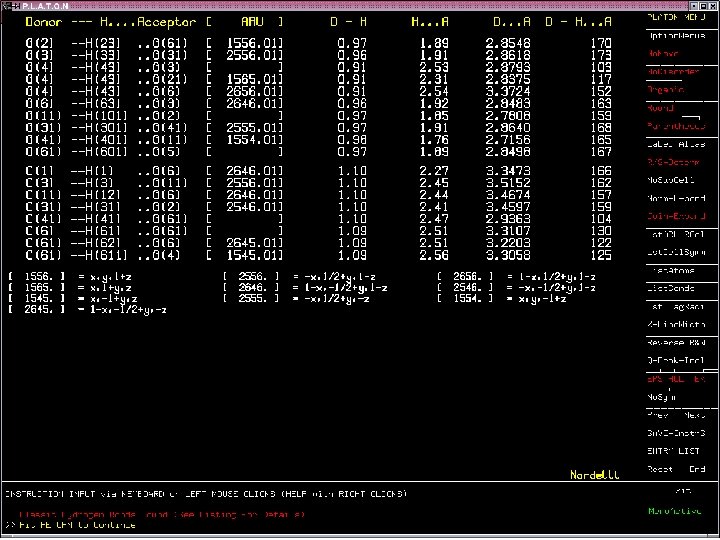 Finally • • Other features: Structure Tidy (CIF input) Bond Valence Renaming of atoms, cif 2 res, asym-view More Info: ‘www. cryst. chem. uu. nl/platon’ Right mouse clicks > help on menu item