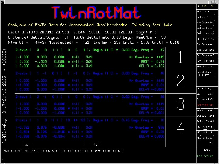 Example • Structure refined to R= 20% in P-3 • Run Twin. Rot. Mat on CIF/FCF • Result: Twinlaw with estimate of the twinning fraction and drop in R-value