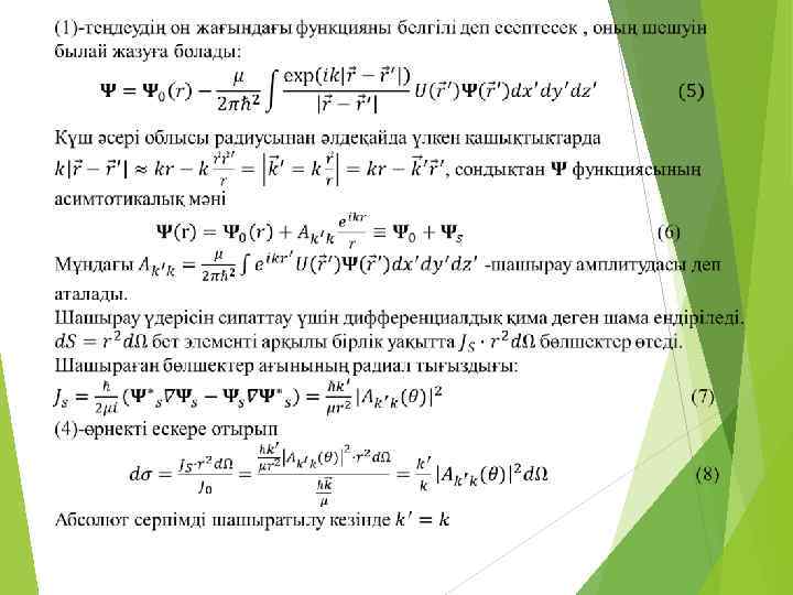 ● Шарт: бөлшектердің орташа арақашықтықтары Де-Бройль толқын ұзындығына тең немесе одан кіші болғанда бөлшектердің толқындық қасиеті пайда болады. Бұл жағдайда біз шашырау теориясын кванттық механика тұрғысынан қарастырамыз. а ● Кванттық механикада бөлшектердің күйін толқындық функциямен сипаттаймыз.
