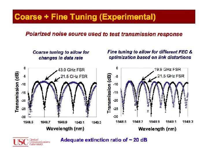 Results: Tunable OTDM • The main reason for the 9 -d. B penalty reduction is the reduced beating region caused by bit-overlapping at same wavelength. • Residual beating still exists due to slow-light-induced pulse broadening. B. Zhang, et. al. , Optics Express, 15, (2007)