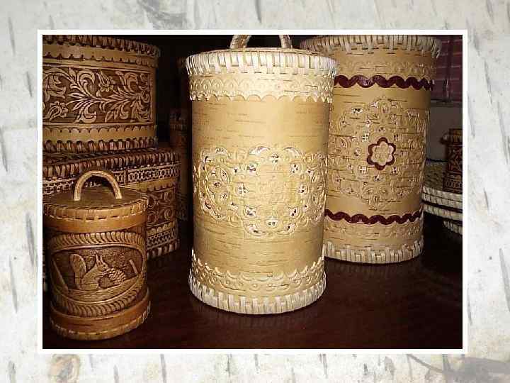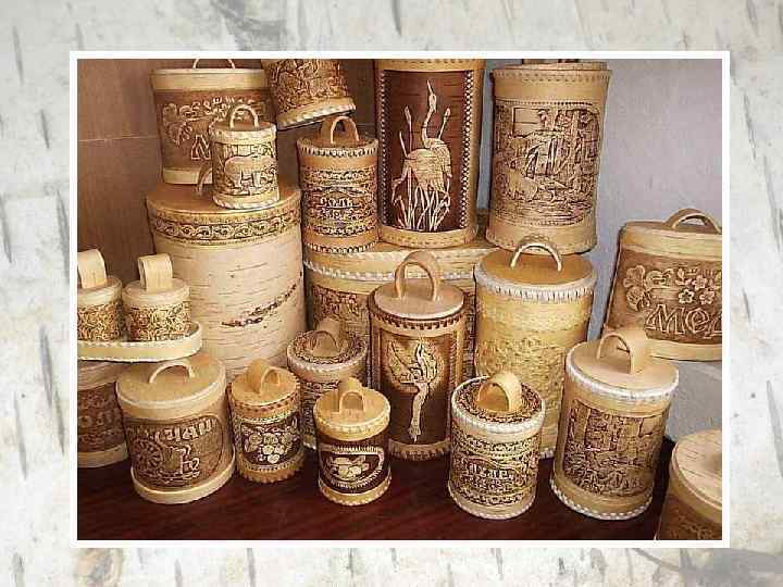 Художественные изделия из бересты - оригинальный вид народного творчества. Береста привлекала внимание народных умельцев тем, что при обработке она сохраняла свои свойства - мягкость, гибкость и прочность.