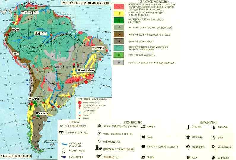 ПРОМЫШЛЕННОСТЬ. Долгое время промышленность региона характеризовалась в первую очередь развитием горно-добывающих отраслей. Однако, в последнее время ведущая роль стала переходить к обрабатывающей промышленности (особенно черная, цветная металлургия, нефтепереработка, а так же электроника и машиностроение). В Бразилии получили развитие электроника, автомобиле-, судо-, самолетостроение; в Мексике, Аргентине – производство автомобилей, станков. СЕЛЬСКОЕ ХОЗЯЙСТВО. Представлено двумя совершенно разными секторами. Первый сектор – это высокотоварное, плантационное хозяйство. Крупнейшие в мире производители бананов – Коста-Рика, Колумбия, Эк-вадор, Гондурас, Панама. На судах-рефрижераторах весь сбор бананов вывозится в Европу, США, причем по дороге они дозревают. На Кубе 1/2 всех обрабатываемых земель занята плантациями сахарного тростника. Сахарные заводы производят более 5 млн т сахара в год. Сахарная промышленность – отрасль специализации Кубы. Второй сектор – это потребительское малотоварное хозяйство, не затронутое «зелёной революцией» . Крестьяне, занятые в нём выращивают кукурузу, маниоку, фасоль, овощи, картофель.