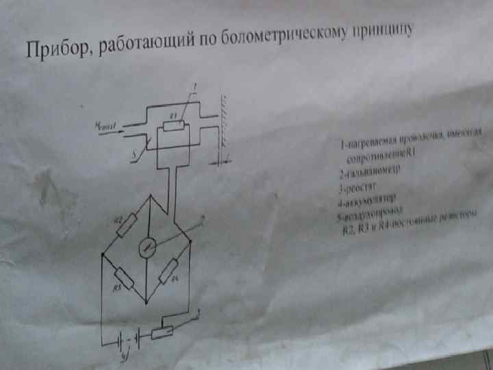 Б)Приборы, действующие на основе болометрического принципа. Приборы электротермические (болометрические) основаны на зависимости между количеством тепла, теряемого нагретым телом, и скоростью воздушного потока, в котором помещено это нагретое тело. В качестве нагретого тела обычно используют платиновую проволоку, нагреваемую электротоком. О скорости воздушного потока, а следовательно, и о расходе воздуха можно судить по току, необходимому для поддержания постоянной температуры, а следовательно, и сопротивления проволоки, или по сопротивлению, т. е. по температуре при постоянном напряжении на концах проволоки. По этим признакам приборы делятся на две основные группы: с постоянным напряжением и с постоянным сопротивлением.