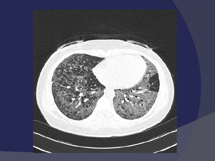 Легионеллёзная пневмония Чаще развивается у ослабленных пациентов с хроническими заболеваниями, у лиц, получающих иммунодепрессанты, глюкокортикоиды, цитостатики. Легионелла выделяет эндотоксин с протеолитическими способностями, пневмония носит деструктивный характер. Течение тяжелое, пневмония долевая. Полисегментарная, с высокой интоксикацией, вплоть до инфекционнотоксического шока, осложнения: плеврит, пневмоторакс. Поражение желудочно-кишечного тракта (тошнота, рвота, диарея), острая почечная недостаточность, токсическое поражение печени, энцефалопатия.
