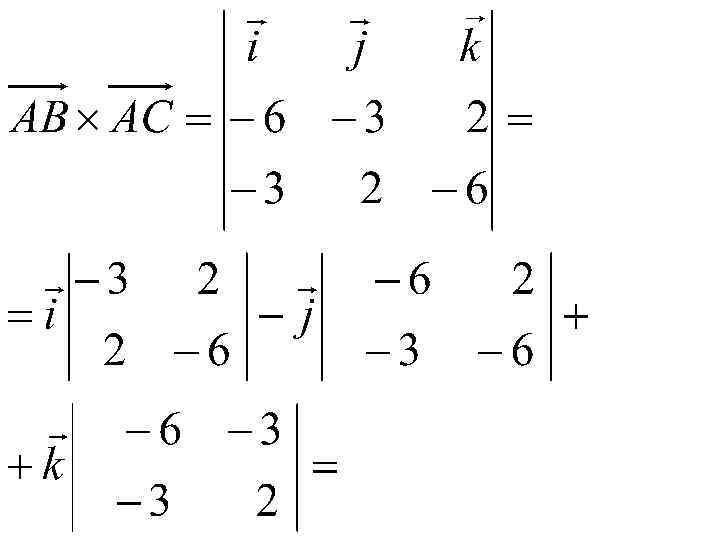 • Решение. Находим векторы • Вычисляем векторное произведение