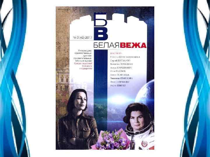 «Валентина Владимировна Терешкова является первой женщиной-космонавтом Земли. Она почетный гражданин города Витебска и еще более двадцати городов во многих странах мира. Валентина Владимировна не только первая «Чайка» планеты Земля, но и единственная женщина, слетавшая в космос в качестве командира космического корабля, хотя и в одиночку» . Г. Лянькевич, В. Осипов «Звездная «Чайка» «Белая вежа» № 3, 2017