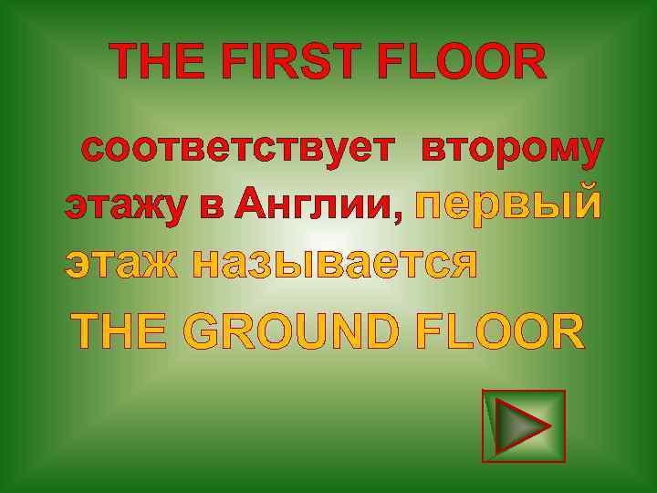 THE FIRST FLOOR соответствует второму этажу в Англии, первый этаж называется THE GROUND FLOOR